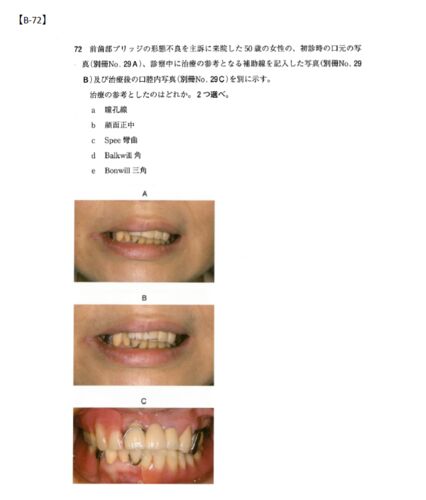 先週の土曜日に出張講義を受講して下さった方々、誠にありがとうございます(*´▽`*) 3コマという限られた時間の中で、できることを出し切りましたが、皆様には伝わったでしょうか・・・・【116B-72】 【解説】Aの写真では口唇のズレや咬合平面のずれなど、現…
