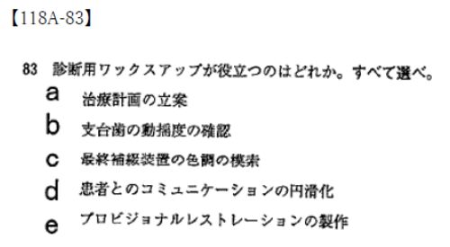 118回歯科医師国家試験【118A-83】歯冠補綴学:診断用ワックスアップ