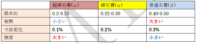 本日は、① 各種石膏の混水比や膨張率の違い を見ていきましょう☆