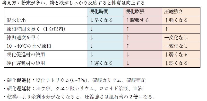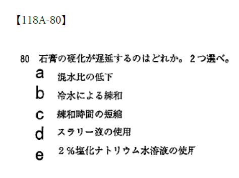 〇b?具体的な温度が記載されておらず微妙ですが、常温以下の温度の水での練和は硬化時間が短縮する。冷水をそれ以下の温度とするなら、硬化時間は延長する。